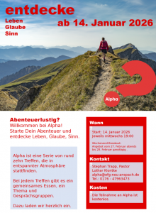 Auch in 2026 werden wir wieder einen Alphakurs haben. Alle Infos dazu im Flyer.Ganz herzliche Einladung als alle Interessierten!