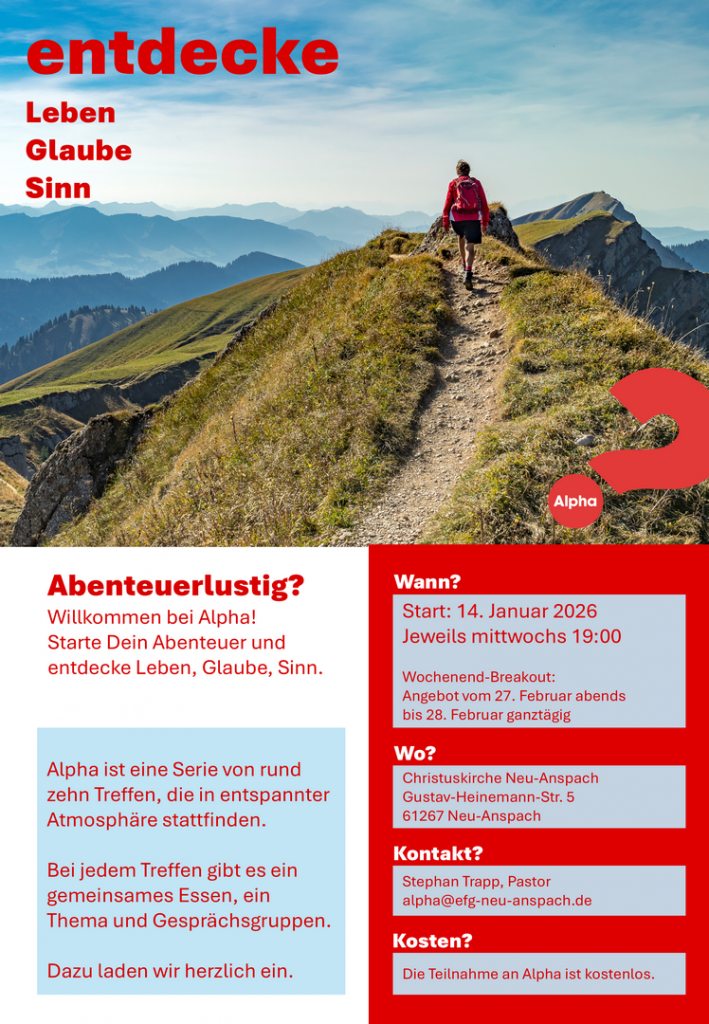 Auch in 2026 werden wir wieder einen Alphakurs haben. Alle Infos dazu im Flyer.